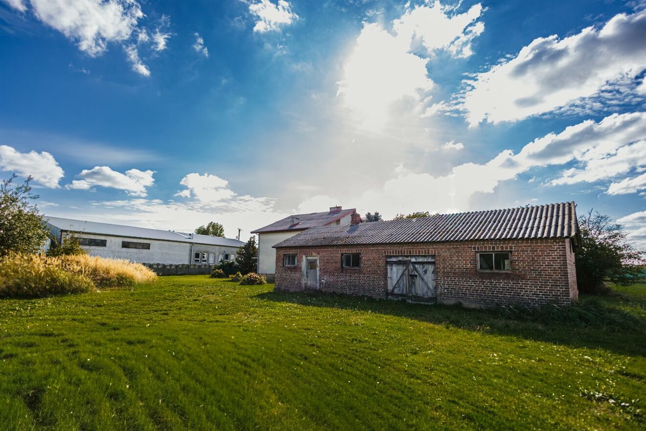 Budynek gospodarczy murowany z cegły, kryty eternitem, nieociepplony.